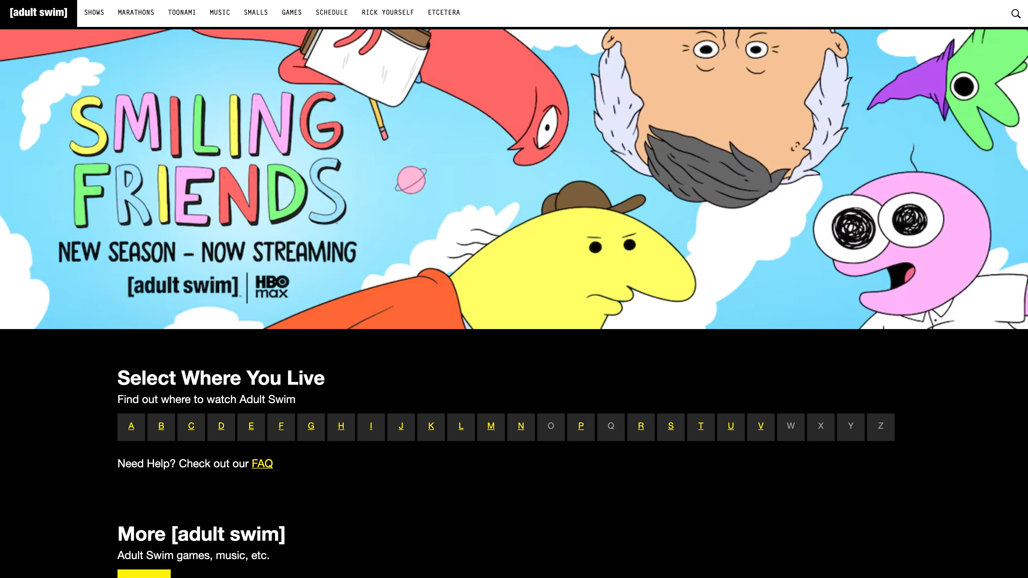 Adult animation and anime programming including Rick and Morty.