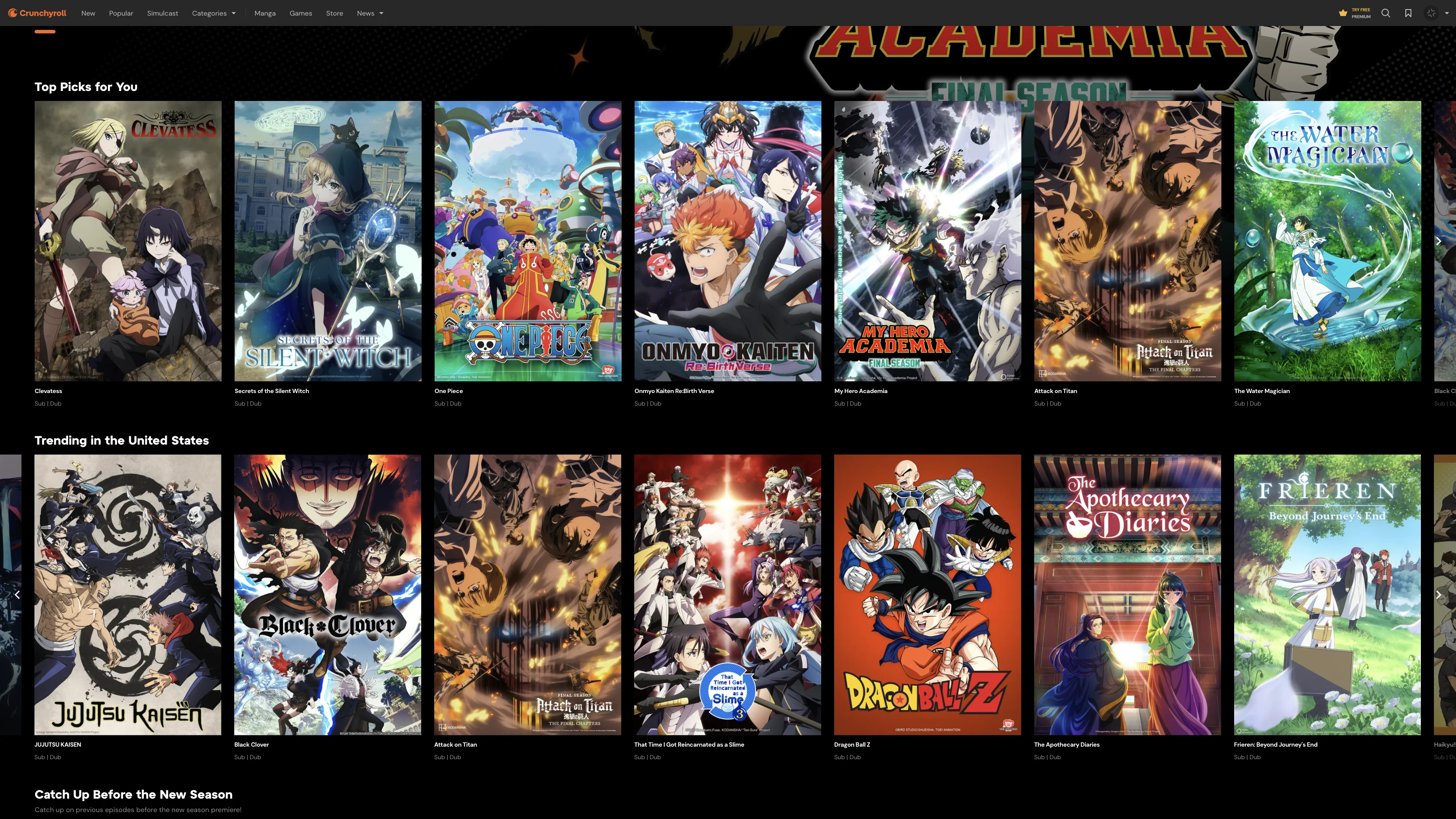 Hulu's anime library with classic and current series.